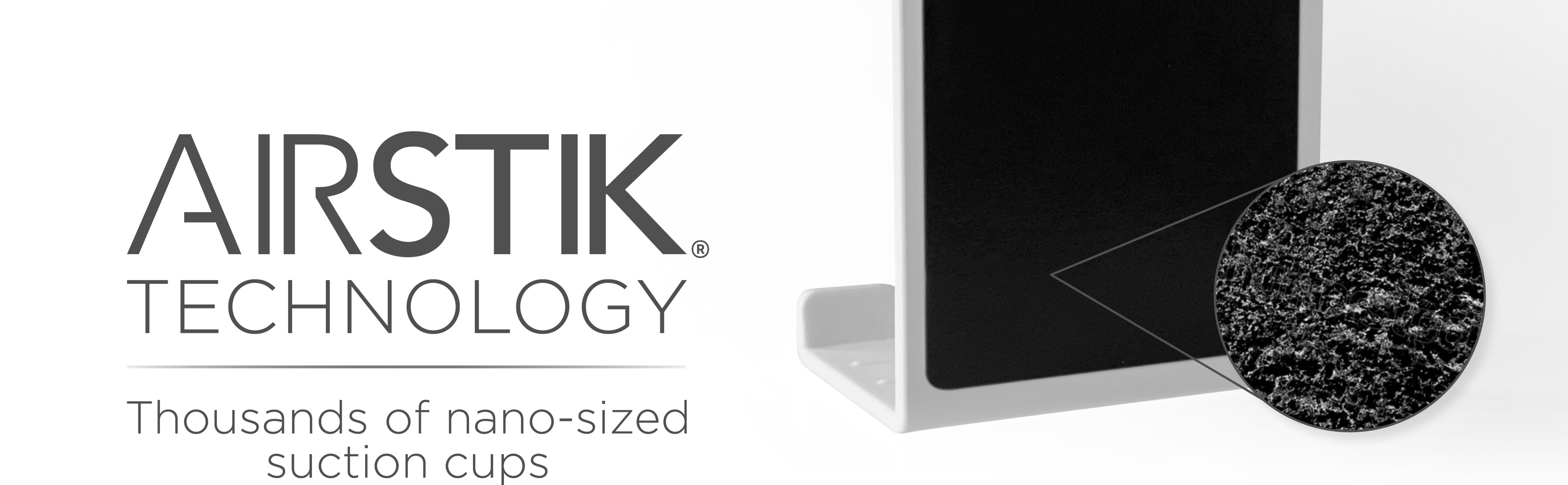 轻松随意地移动您的 AIRSTIK 产品。永远不需要任何工具。 只需拉动即可移除,不会损坏表面或留下任何残留物。如果您不满意,可以将其重新放置在任何地方,次数不限。AIRSTIK 防水,不会像传统吸盘那样失去吸力。