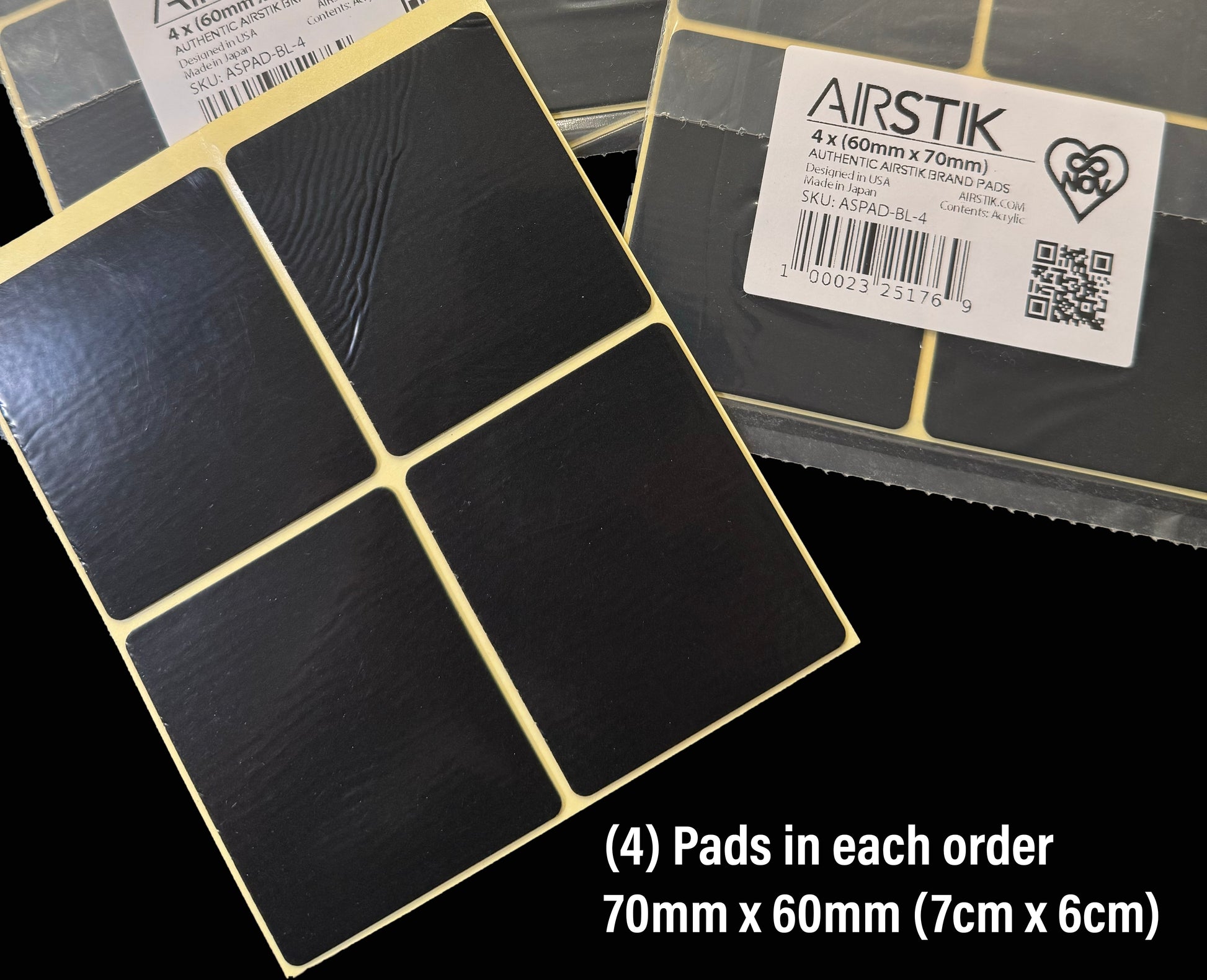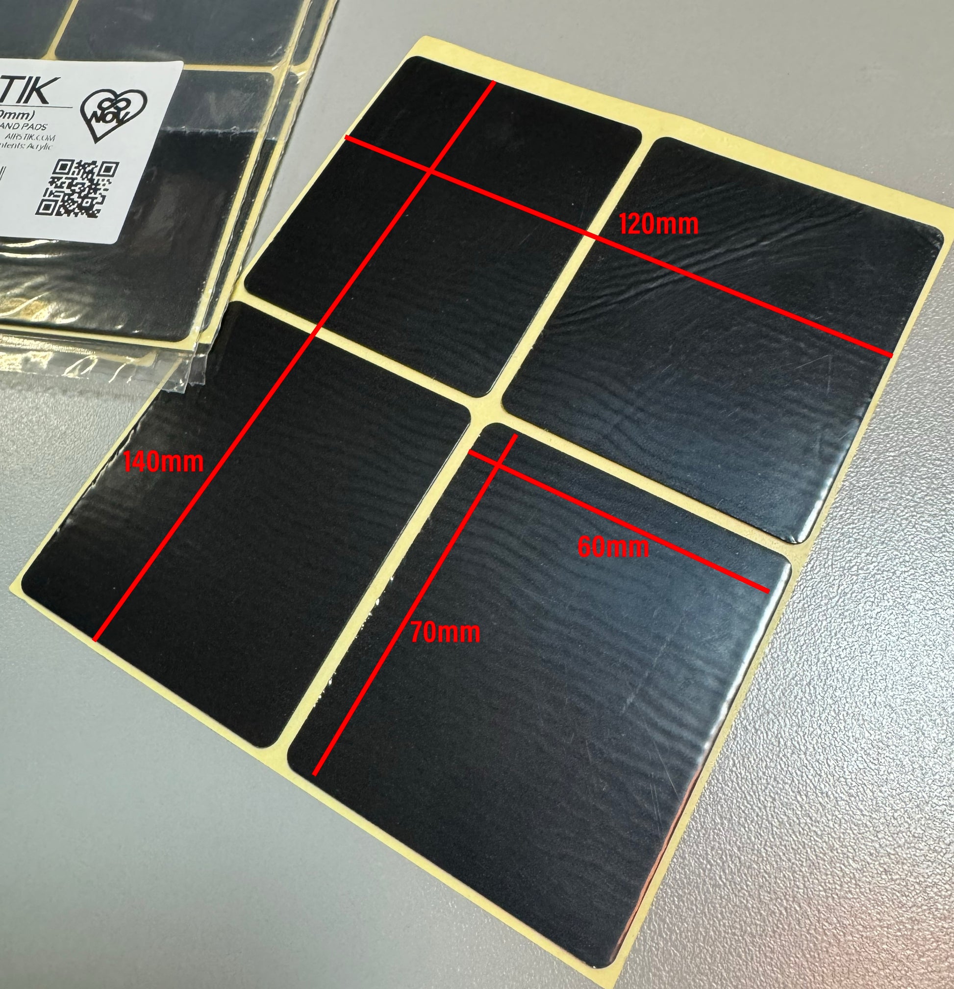 每个 AIRSTIK® 垫尺寸为 2.75 英寸 x 2.25 英寸(70 毫米 x 60 毫米)